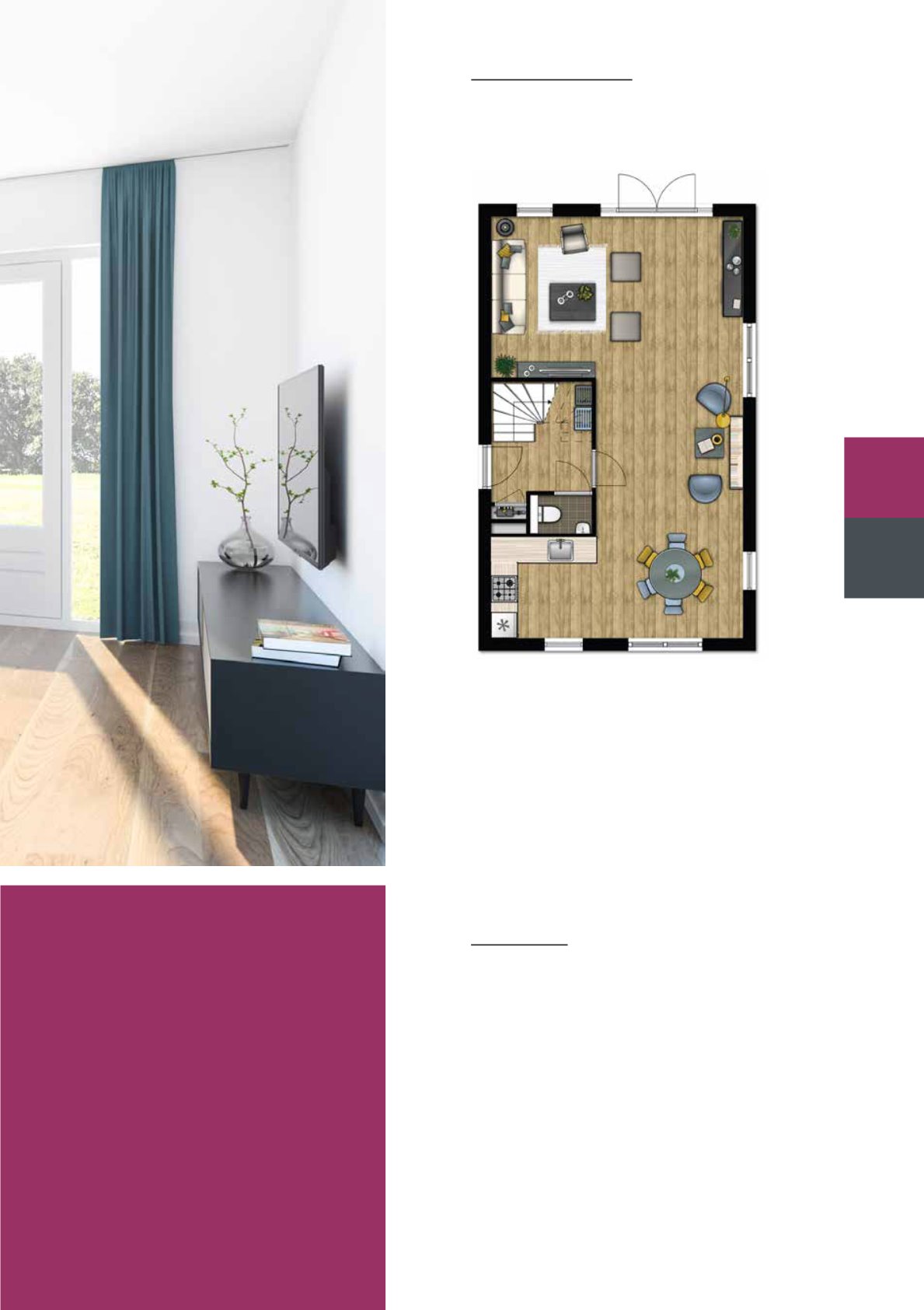 voorzijde waar ruimte is voor een woonkeuken. Op