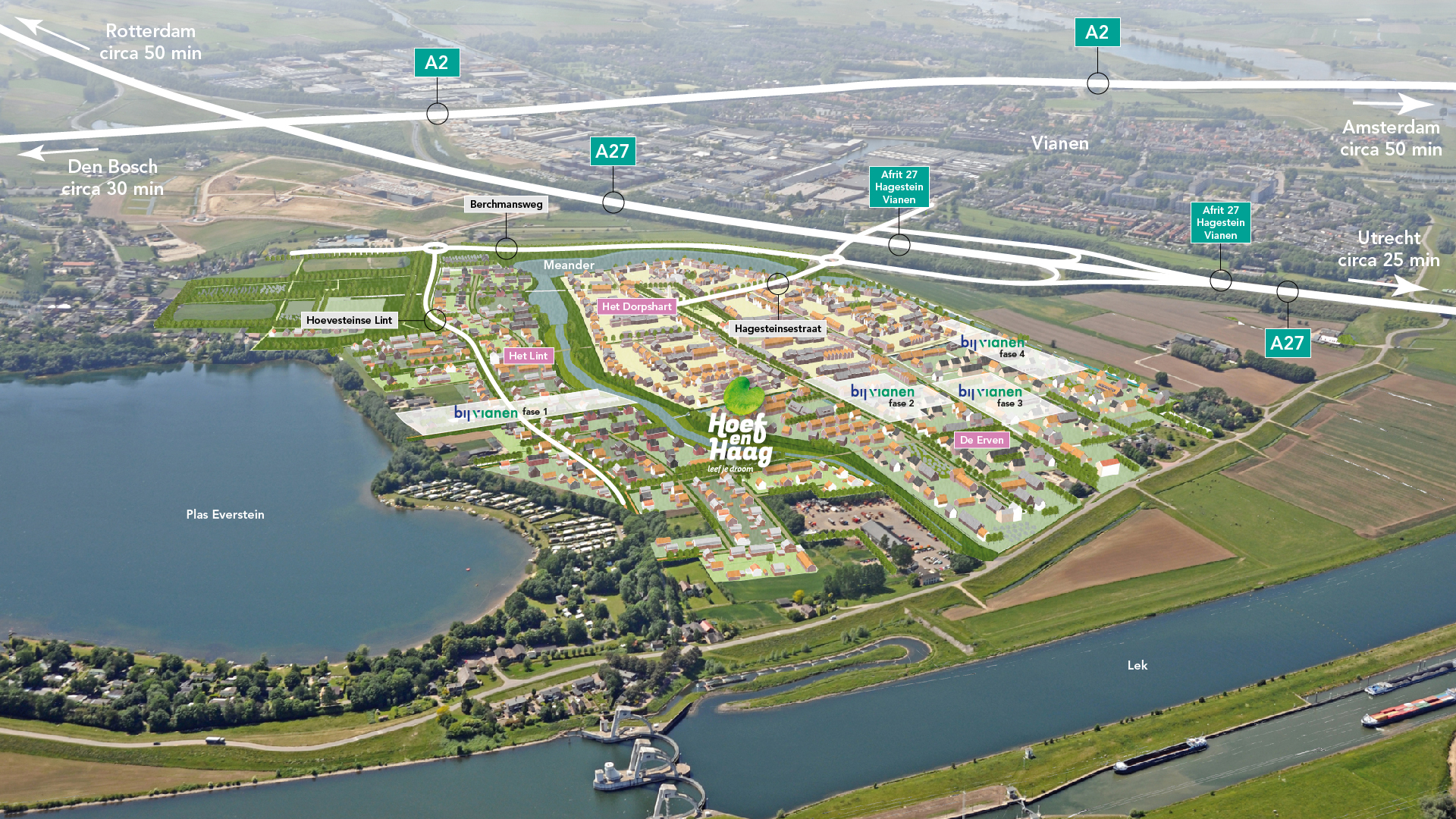 In het hart van Nederland, met de mooie waterrijke en groene omgeving van de gemeente Vijfheerenlanden als decor, is het goed wonen. Wij ontwikkelden hier Nieuwbouwproject BijVianen – met in totaal 162 nieuwbouwwoningen. De locatie ligt vlak bij de mooie en uiterst centraal gelegen vestingstad Vianen, in het dorp Hoef en Haag, dat dateert van 2016. Nieuwegein en Utrecht liggen aangenaam dichtbij en ook de grote steden in de Randstad zijn snel bereikbaar.